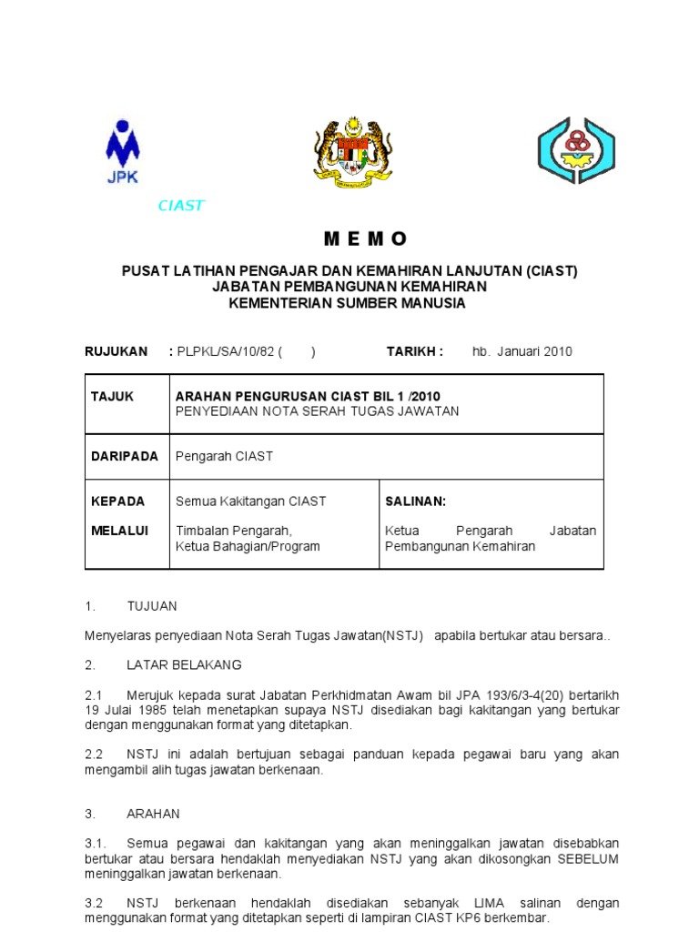 Pekeliling Nota Serah Tugas Jpa : Menyelaras penyediaan nota serah tugas jawatan(nstj) apabila bertukar atau bersara.. Surat penyerahan dan akuan terima nota serah tugas 2. 2010 sehingga pada 27 disember 2013. Moshims borang serah tugas guru. Pekeliling perkhidmatan ini berkuat kuasa mulai tarikh ianya dikeluarkan. Nota serah tugas kandungan perkara mukasurat 1.