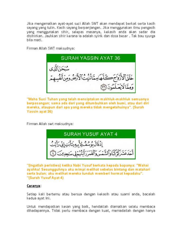 Berikut ini adalah tata caranya. Mari lah kita amalkan ayat pengasih surah yusuf ayat 4 dan surah thahaa ayat 39 seperti di bawah ini. Bacalah surah yusuf ayat 4 yang berbunyi bermaksud: Surat yusuf ayat 4 merdu doa pengasihan nabi yusuf paling ampuh dan cara mengamalkanya lihat. Sedikit kami tegaskan kepada anda bahwa fadhilah atau manfaat surat yusuf ayat 31 ini sangat banyak sekali, salah satunya sebagai amalan atau doa pengasihan umum dan khusus.
